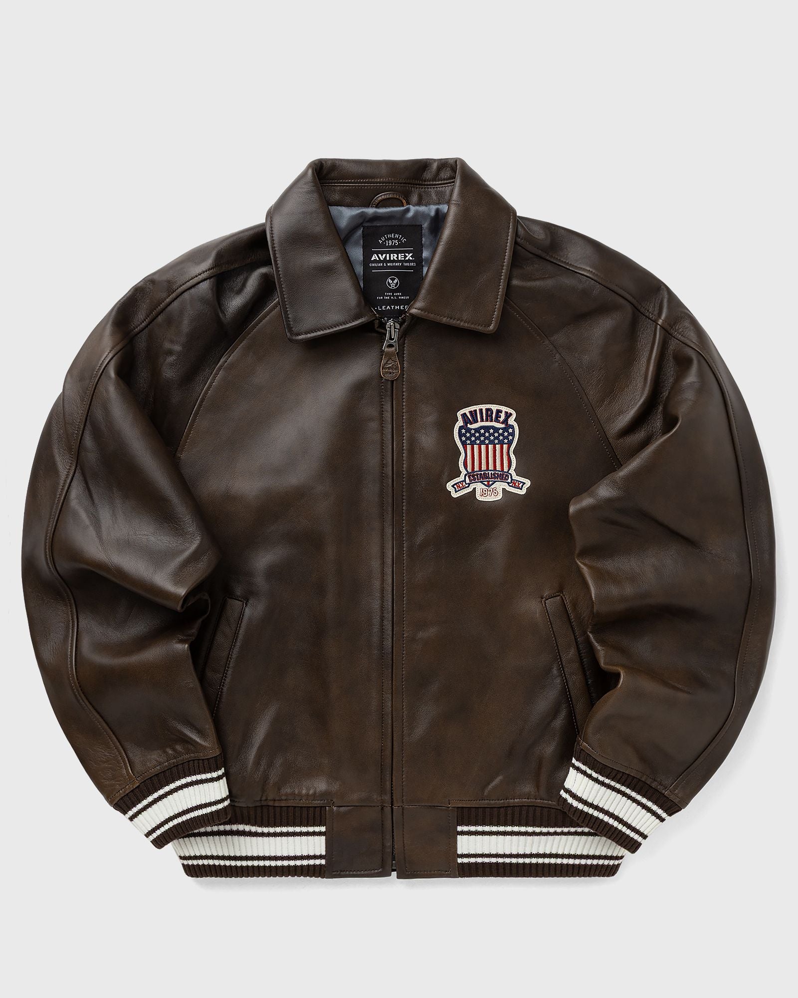 A statement piece for over 40 years: the Icon Jacket from Avirex is a true original. Made from 100% antique European lambskin leather, it combines military heritage with iconic street style. - Leather bomber jacket - Logo details on the collar, back, and front chest - Front zipper with Avirex hardware - Striped ribbed hem and cuffs, as well as single welt pockets
