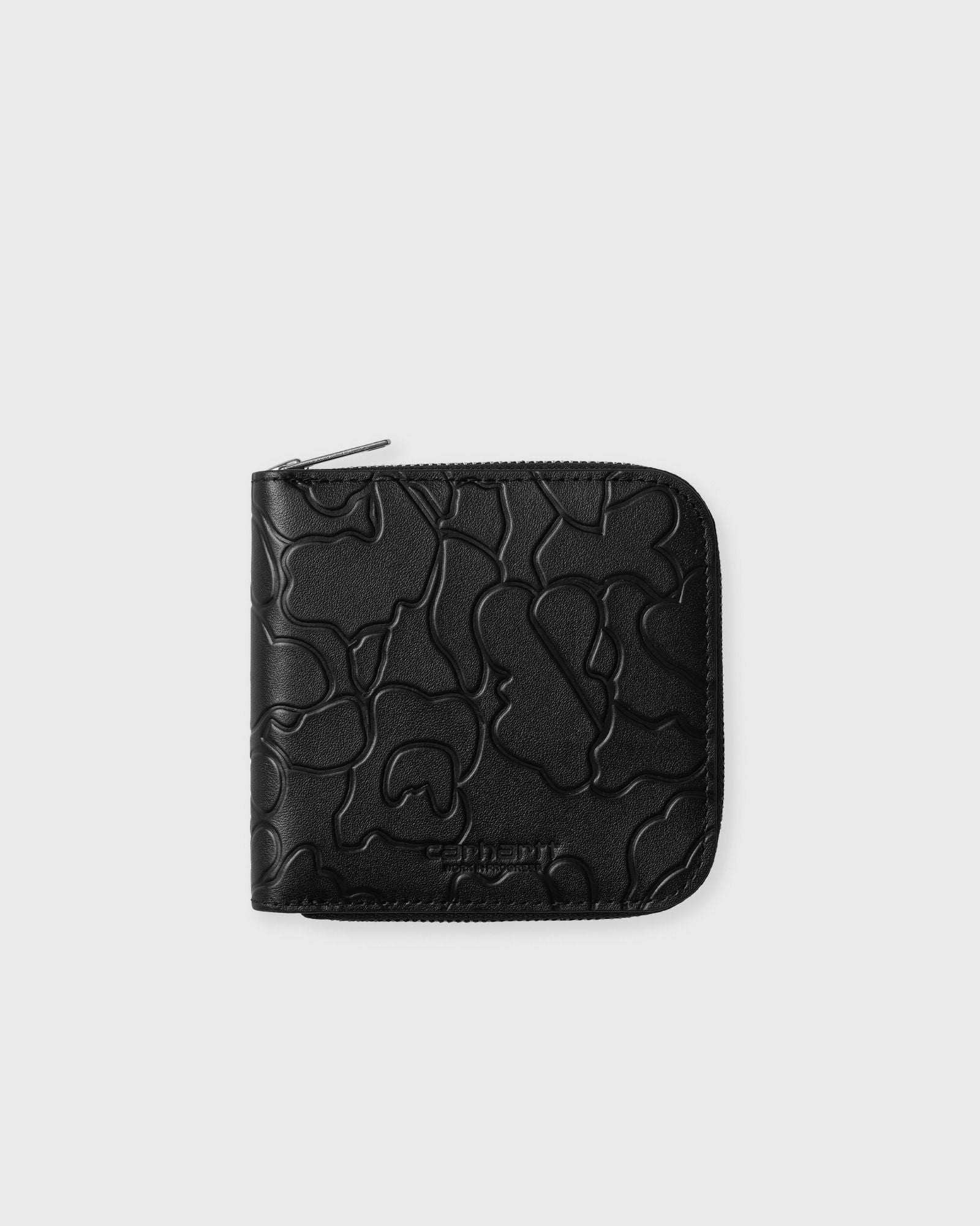The Camo Duck Wallet by Carhartt WIP is made of leather and has a tri-fold design. The style has a coin pocket, card slots, and a compartment for bills. There is an embossed script logo on the front. - 100% cowhide leather - Dimensions: 9.5 x 11 cm - Lined - Zipper closure - Coin pocket - Three card slots - Compartment for bills - Embossed script logo