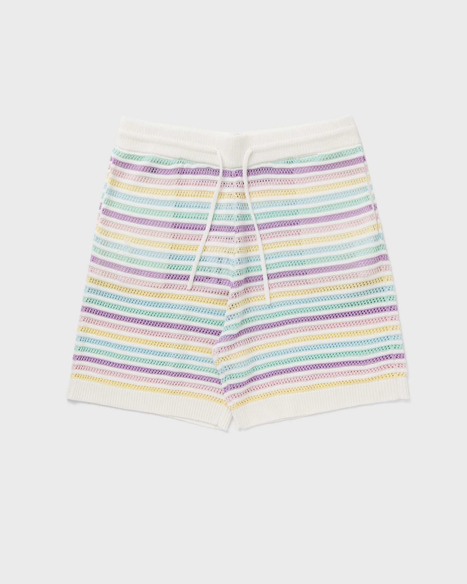 The FLOWER CROCHET SHORTS by Casablanca are made from crocheted cotton fabric and feature a pastel striped pattern. This comfortable style has an elasticated waistband with drawstring and side pockets. - Elasticated waistband with drawstring - Side pockets - Breathable knit