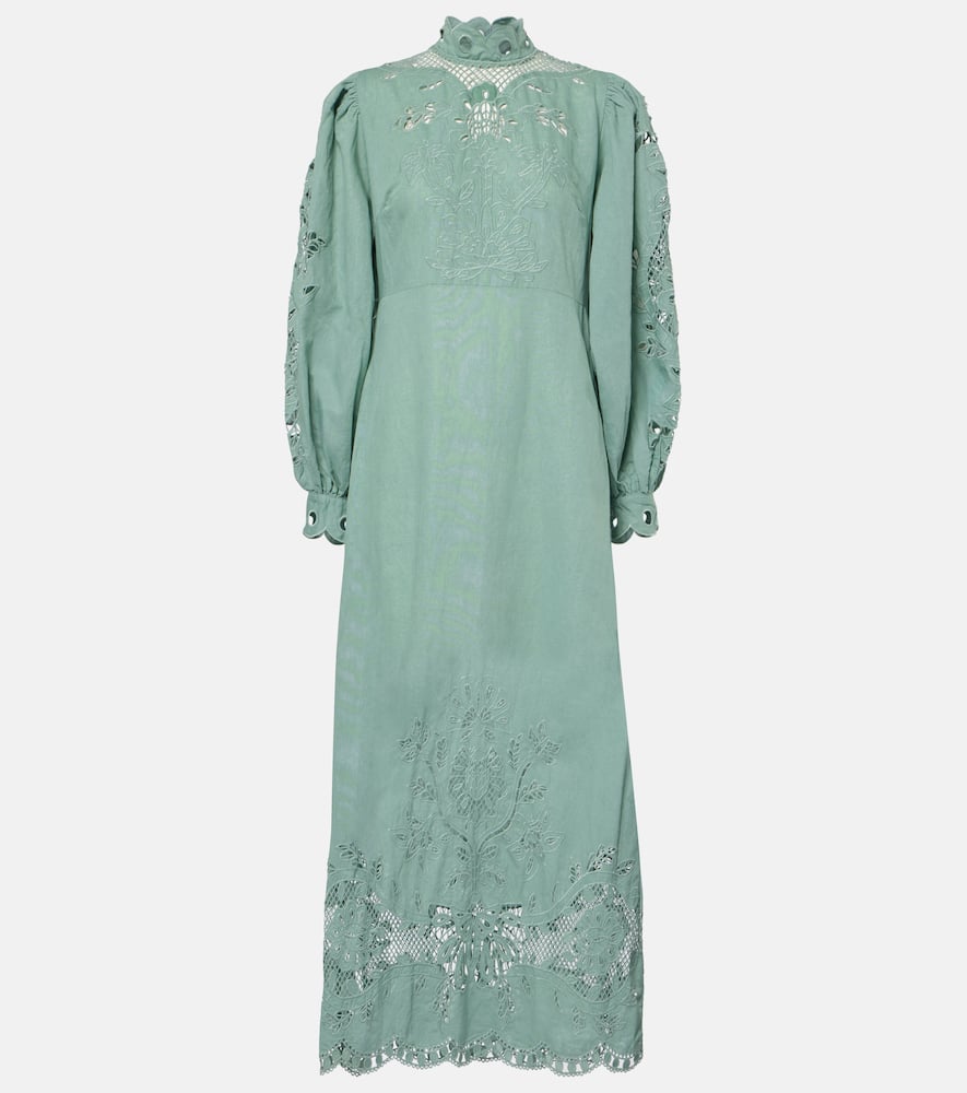 Farm Rio Broderie anglaise linen and cotton midi dress