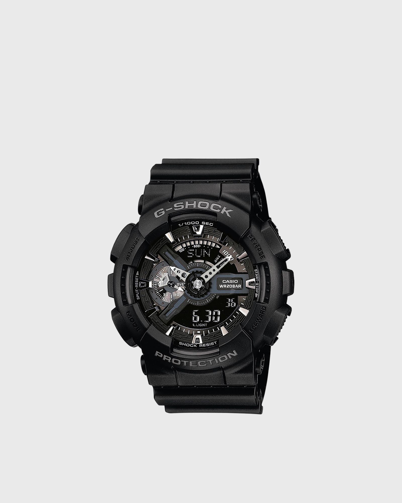 The Casio GA-110 combines analog and digital design elements in one look. The black G-SHOCK is a real eye-catcher with its large dial and silver accents. The gear-shaped style elements create a three-dimensional depth and the analog hands give the G-SHOCK its strong and powerful expression. G-SHOCK was designed and constructed to be water resistant to 20 bar in addition to being absolutely rugged and shock resistant, and it also comes with anti-magnetic properties for accurate time keeping. The GA-110 also has many useful functions, such as world time, stopwatch, countdown timer and daily alarms. - Case size: 55mm x 51.2mm x 16.9mm - Weight: 72g - Case and bezel material: resin - Strap: resin bracelet - Water resistance: water resistant to 20 bar - Glass: mineral crystal