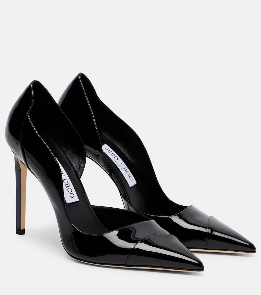The Jimmy Choo Brigitte 100 patent leather pumps by Jimmy Choo offers refined style with a focus on versatile wardrobe piece and everyday wearability. Its black finish and sleek profile make it ideal for modern styling.