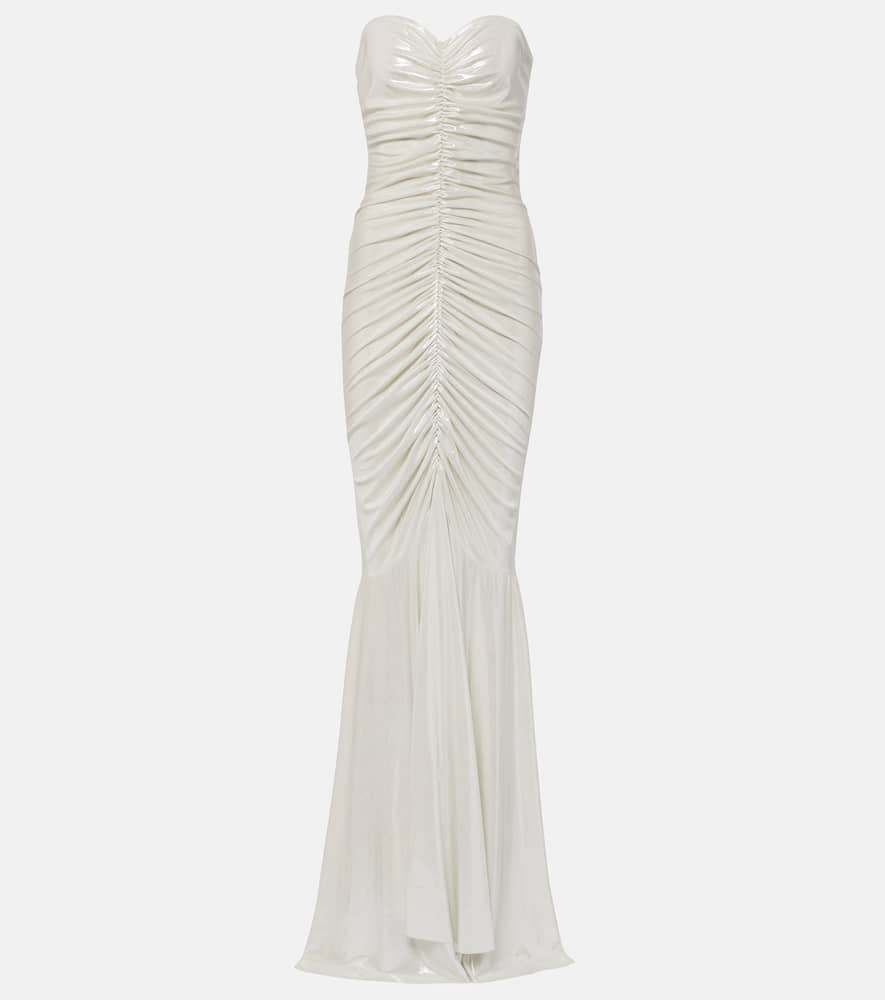 Norma Kamali Ruched Metallic Gown White