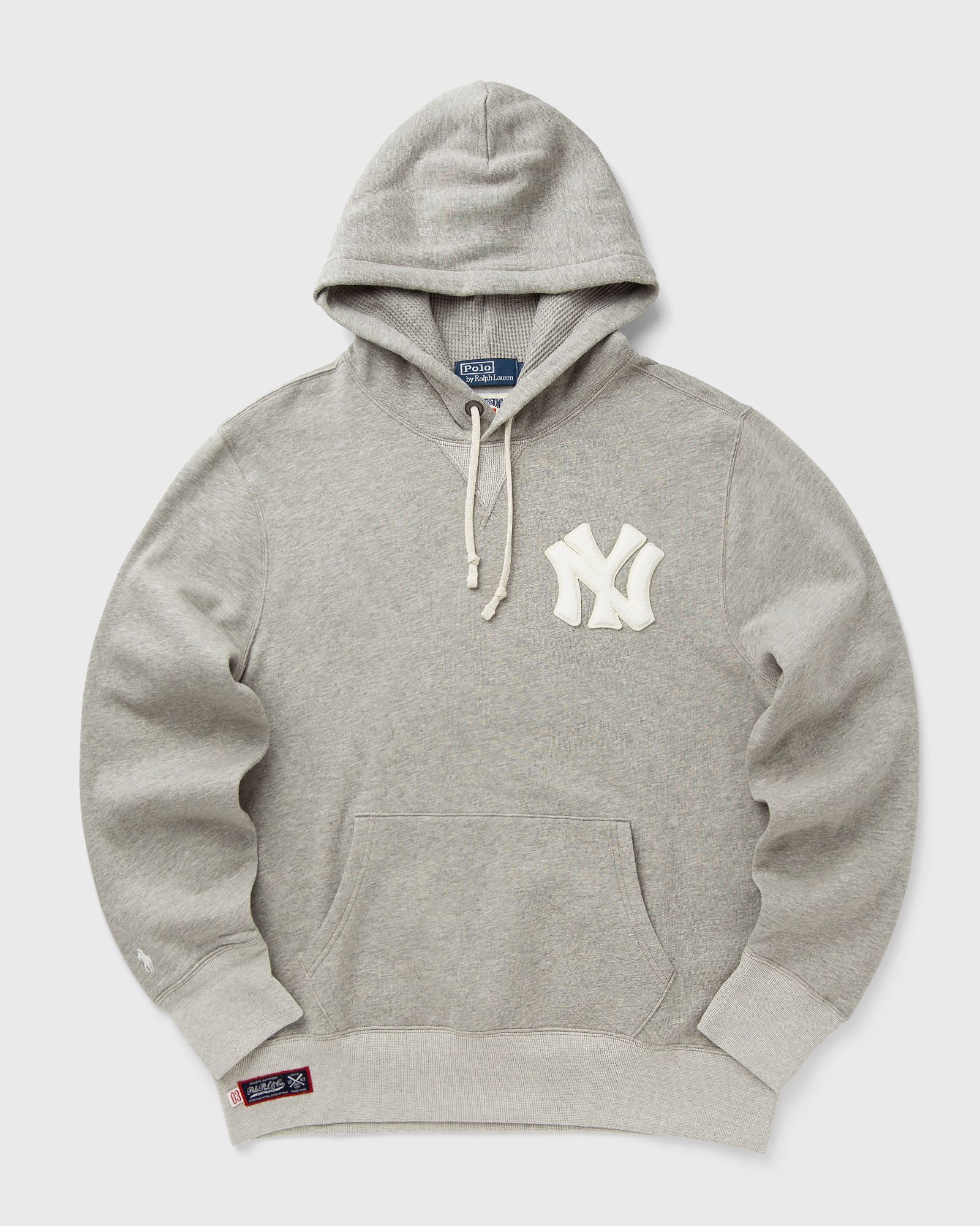 The hooded sweatshirt by Polo Ralph Lauren, made from soft fleece, celebrates Mr. Lauren's close connection to the New York Yankees and baseball. Inspired by his childhood at Yankee Stadium, it features chenille Bronx Bombers logo patches and the iconic embroidered Polo pony. With a comfortable fit and sporty design, it's the perfect statement piece for fans and lovers of baseball culture. - Hood with drawstring and waffle lining - V-shaped ribbed insert - Long sleeves with ribbed cuffs - Chenille patch with New York Yankees logo on left chest and center back - Kangaroo pocket - Chenille appliqu forming Ralph Lauren lettering on center back - Ribbed hem - Signature embroidered pony above right cuff