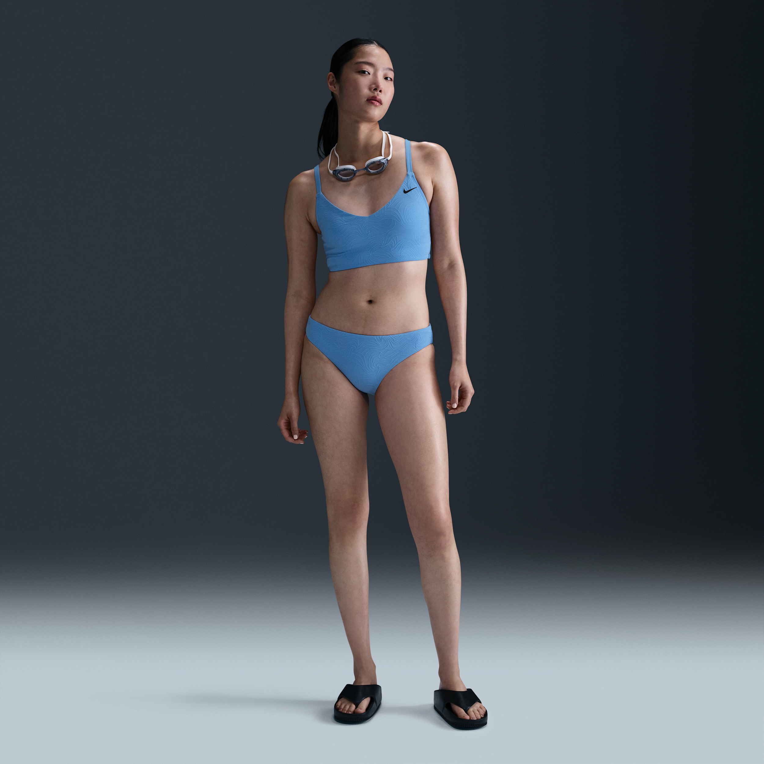 La Prenda inferior de bikini Hipster Nike Swim Water Texture para mujer - Azul ofrece frescura y comodidad para entrenamientos de alto rendimiento. Su tejido ligero y transpirable ayuda a mantenerte seco mientras te mueves con libertad.