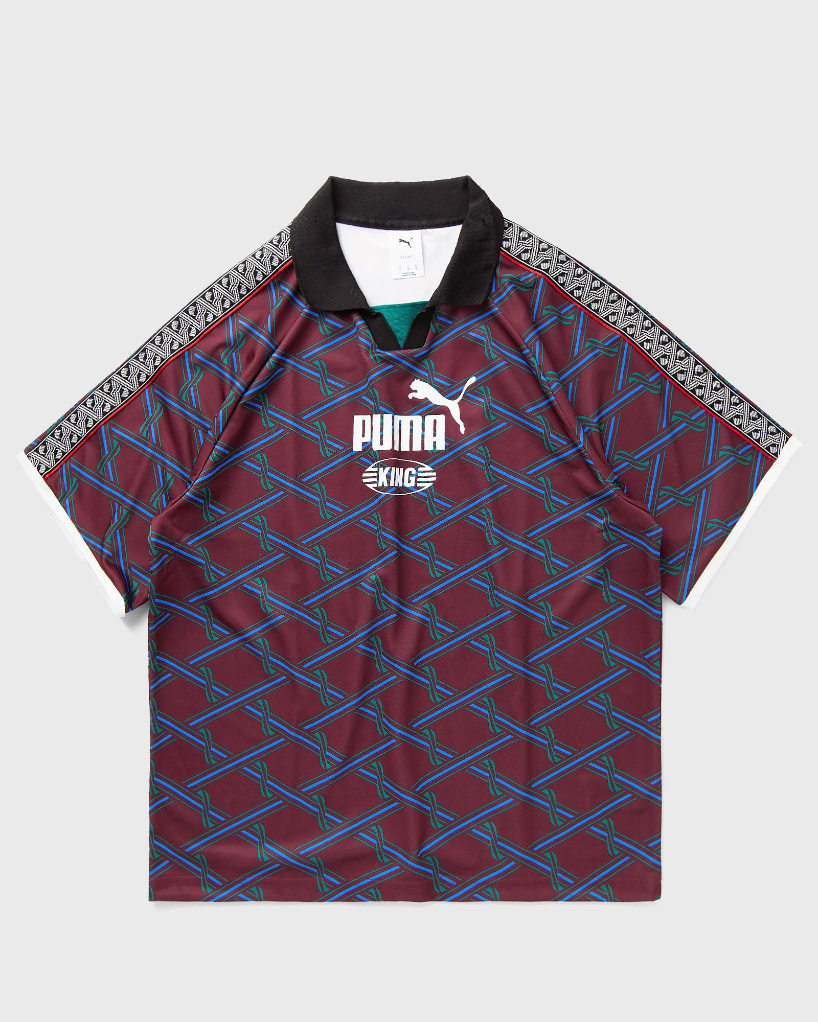 Since its debut so many years ago, the Puma King has remained an icon of soccer terrace culture. Deeply rooted in Puma's DNA, the collection around the King franchise takes the iconic logo and applies it to archival pieces such as jerseys, loungewear and accessories. - King Jersey - Turn-down collar - Short sleeves - Ribbed cuffs - Embellished taping detail along sleeves
