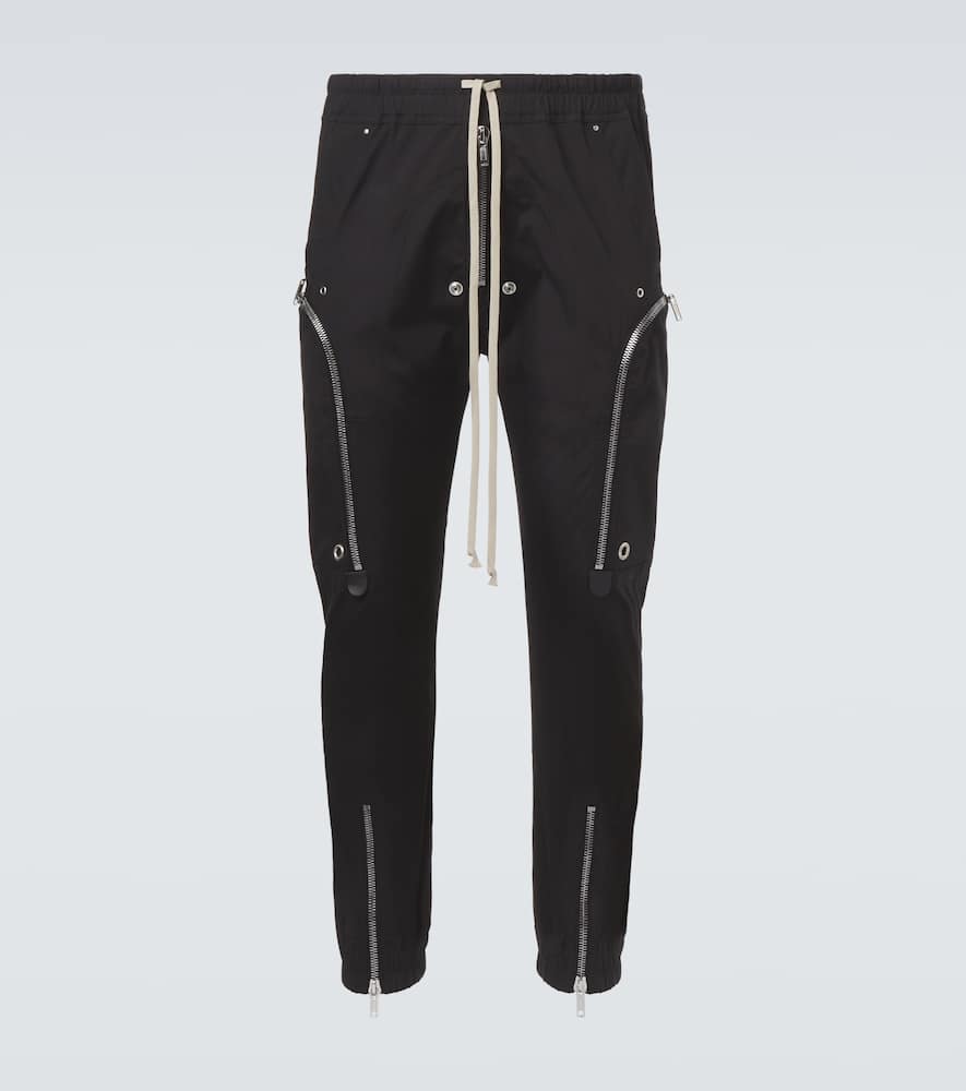 The Rick Owens Bauhaus cotton-blend cargo pants is expertly crafted using material: 97% cotton, 3% elastane. care instructions: dry clean. made in moldova. designer color name: black. item color: black. pocket lining: 100% cow leather. contains non-textile parts of animal origin. hardware color: silver. elasticated drawstring waist. pockets: zipped pockets. closure: partially zipped front. elasticated ankle cuffs. cotton. — ensuring durability and an unmistakable touch of elegance. Its meticulous construction speaks to Rick Owens’s dedication to quality and distinctive design.