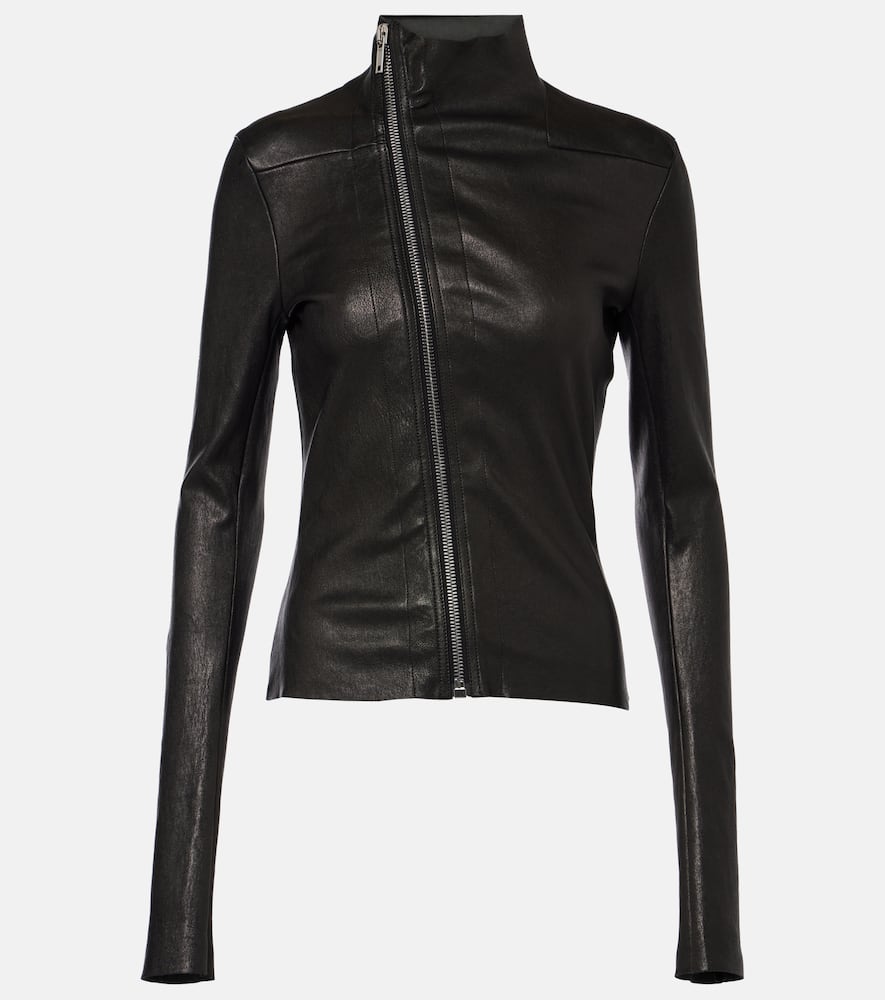Rick Owens Gary asymmetric leather and cotton jacket