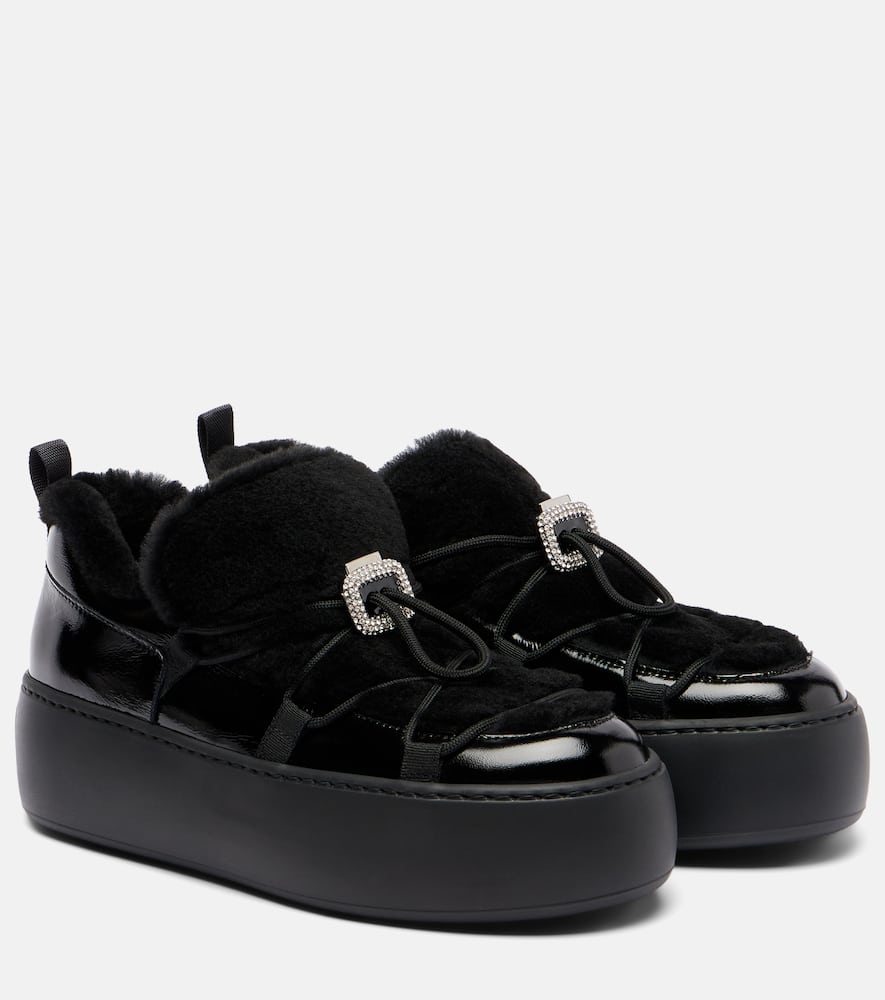 Roger Vivier Viv' Up shearling and patent leather sneakers