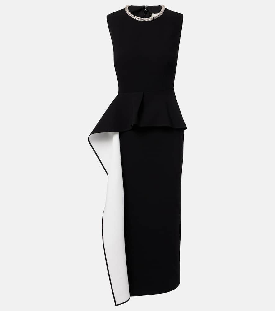 Roland Mouret Embellished peplum satin crepe midi dress
