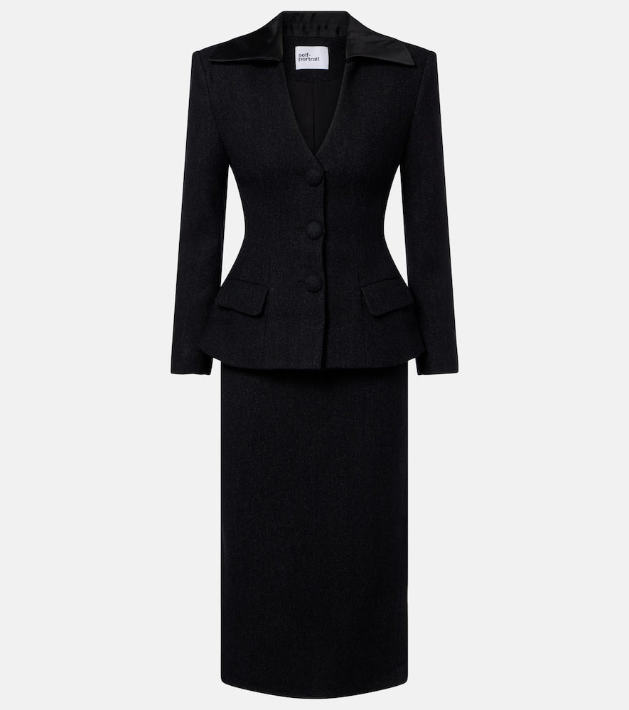 Expertly made by Self-Portrait, this piece is crafted in premium part 1: 70% wool, 24% polyester, 3% cashmere, 1% acrylic, 1% polyamide, 1% viscose, part 2: 70% wool, 24% polyester, 3% cashmere, 1% acrylic, 1% polyamide. and finished in a refined black tone, making it a lasting investment for a considered wardrobe.