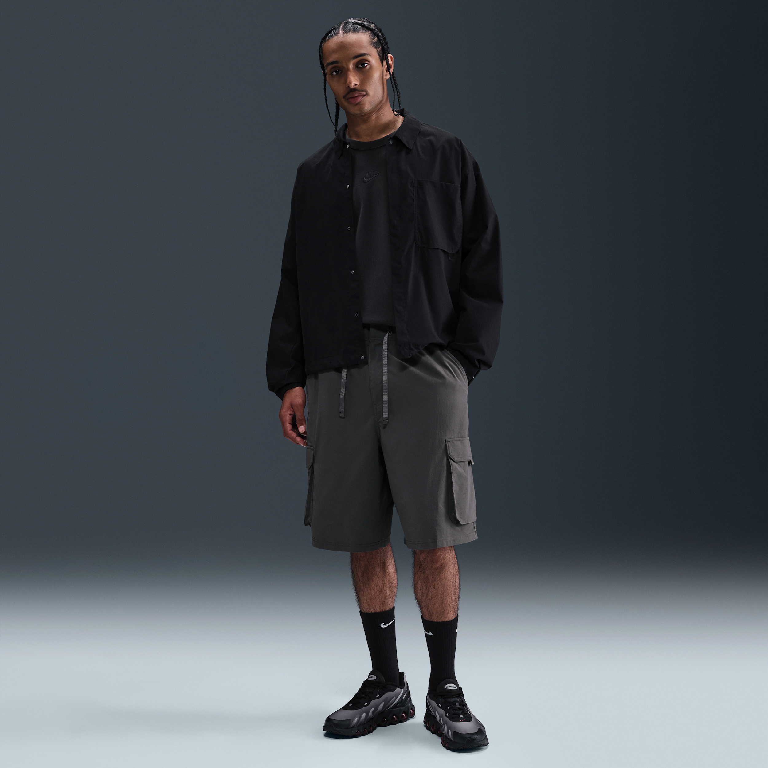 Confeccionados con tecnología absorbente de sudor en un ajuste amplio, estos shorts están diseñadas para ofrecer comodidad informal. Con seis bolsillos para elegir, tendrás muchos lugares para guardar tus objetos esenciales. [] [] ["Datos del producto: Logotipo Nike bordado. Pretina elástica con cordón de ajuste. Cierre. Cierre a presión regulable. Cuerpo: 94% nylon, 6% spandex. Interior del bolsillo: 100% poliéster.. Lavar a máquina. Producto importado"] Style: IB7551; Color: Ceniza medio/Gris hierro/Gris hierro; Size: S; Age Group: Adult | Nike Sportswear Kearny