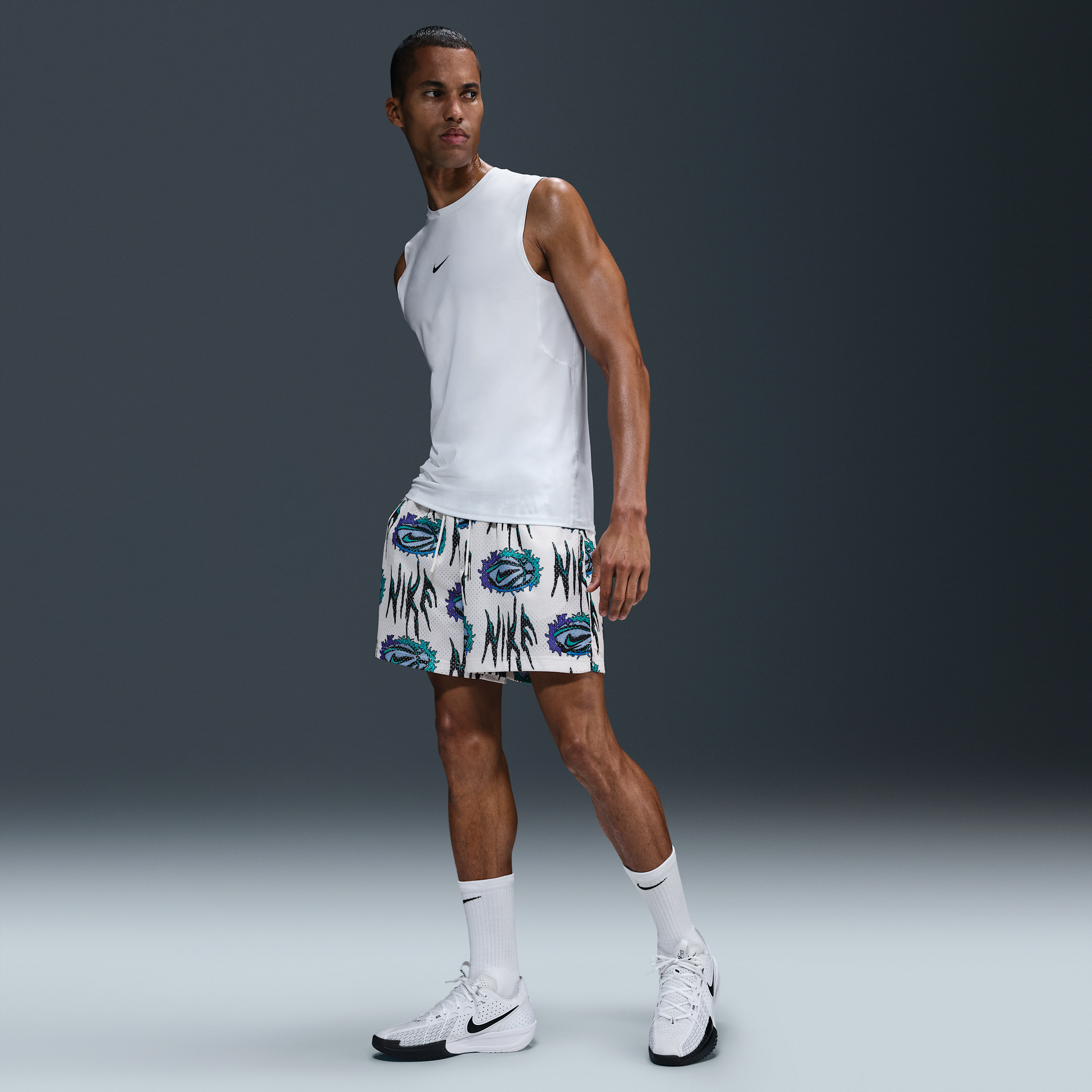 La Shorts de básquetbol Dri-FIT de 13 cm para hombre Nike Practice Mesh - Blanco ofrece frescura y comodidad para entrenamientos de alto rendimiento. Su tejido ligero y transpirable ayuda a mantenerte seco mientras te mueves con libertad.