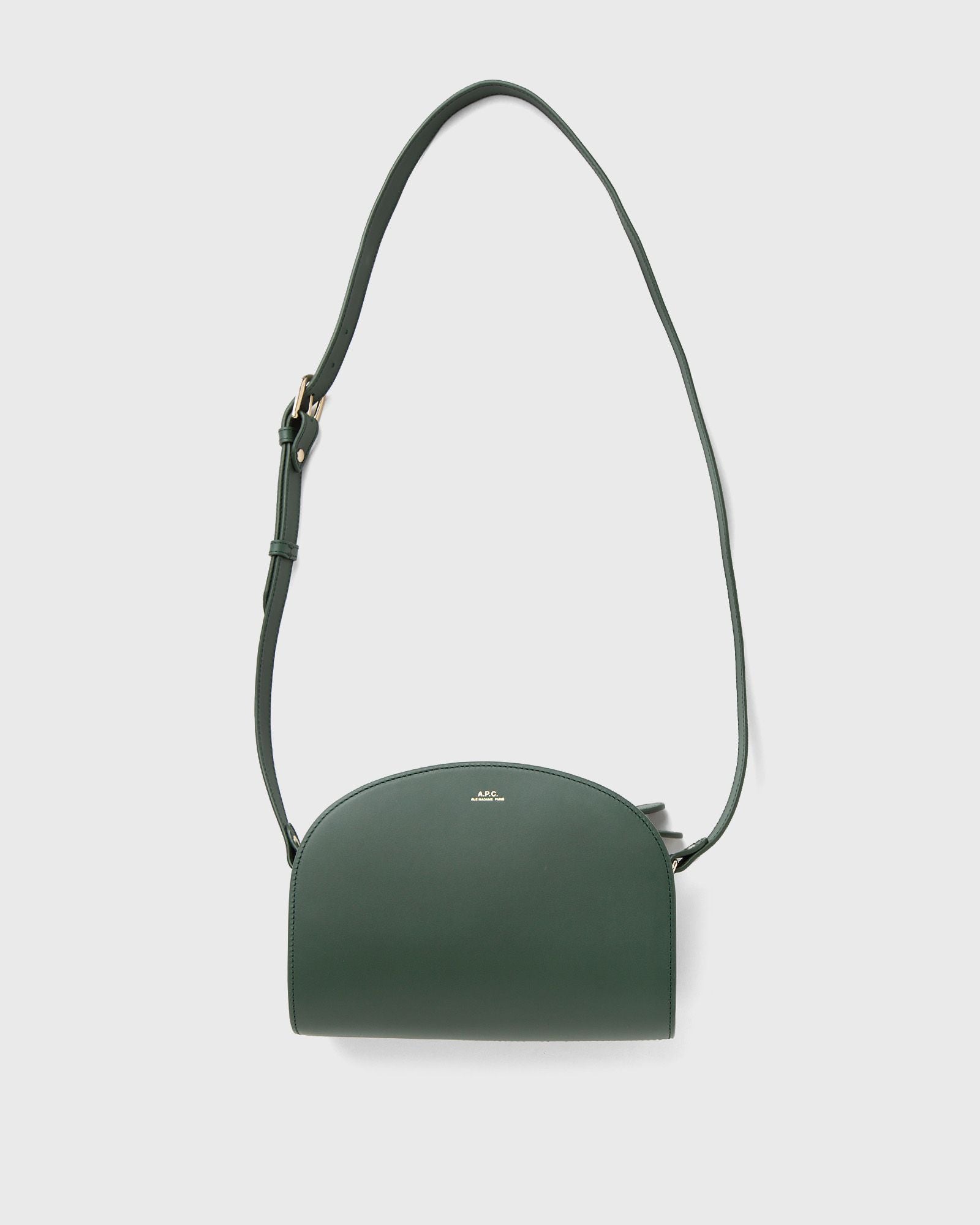 The Sac Demi-Lune is an iconic bag from A.P.C. made from embossed smooth leather. The design of the bag is rounded off with a gold-colored embossed 'A.P.C. Rue Madame' logo. - Zipper with double leather loop - Adjustable shoulder strap - Inside pocket - Size: 24 x 20 x 8.5 cm
