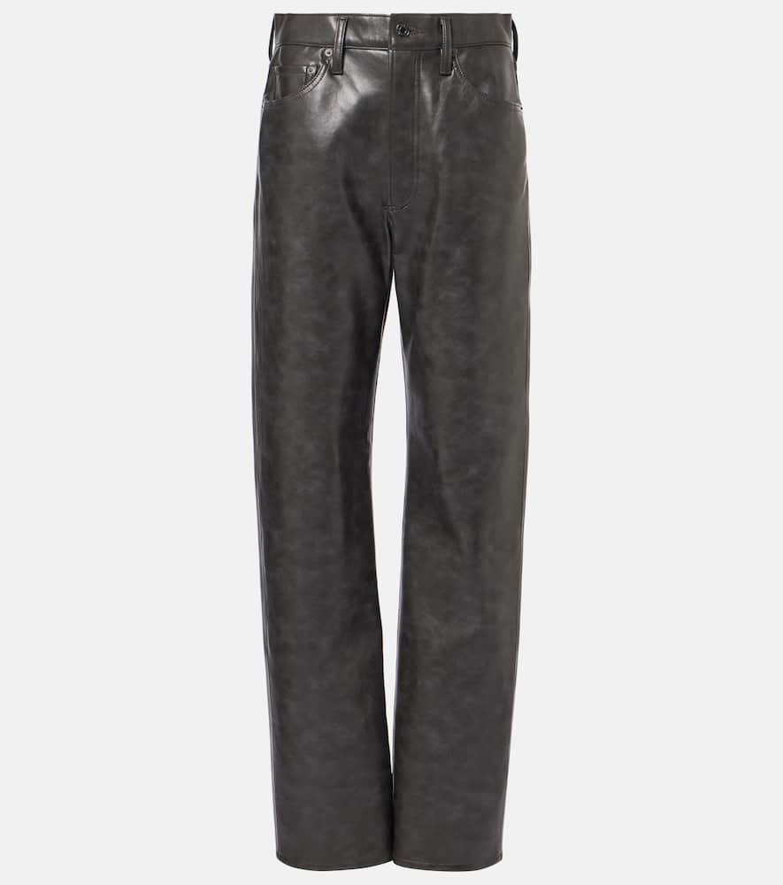 The Agolde Kelly high-rise pants is expertly crafted using material: 50% leather, 30% polyurethane, 20% polyester. care instructions: dry clean. made in the usa. designer color name: smoke. high-rise. fit: straight. pockets: five pockets. belt loops. closure: zip and button fastening. leather. — ensuring durability and an unmistakable touch of elegance. Its meticulous construction speaks to Agolde’s dedication to quality and distinctive design.