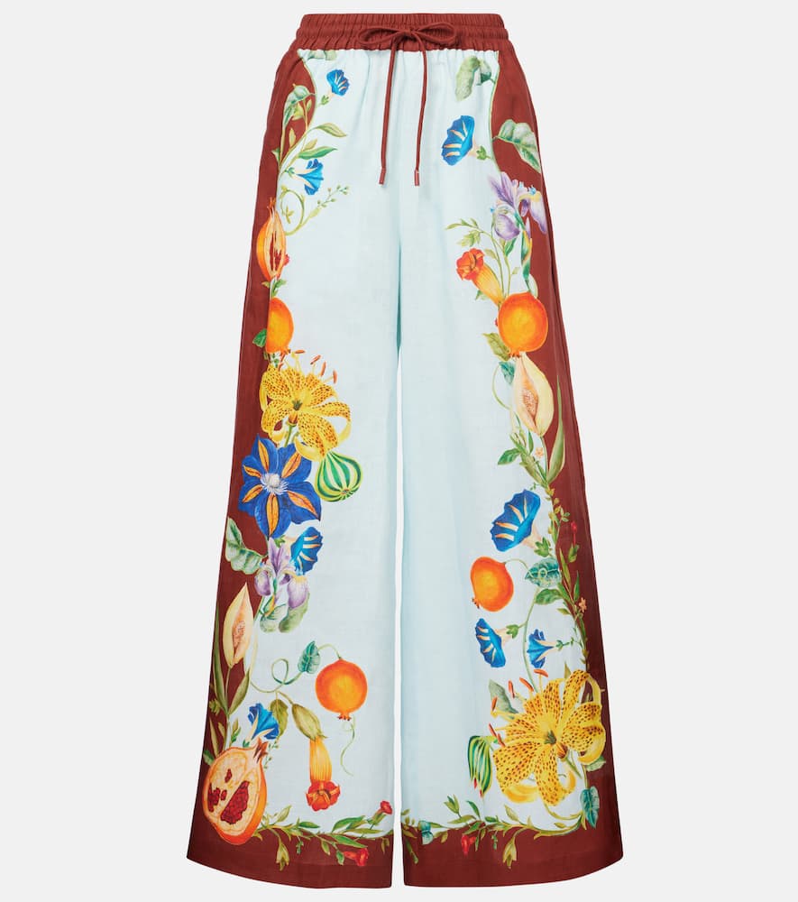 Alemais Dahlia floral linen wide-leg pants