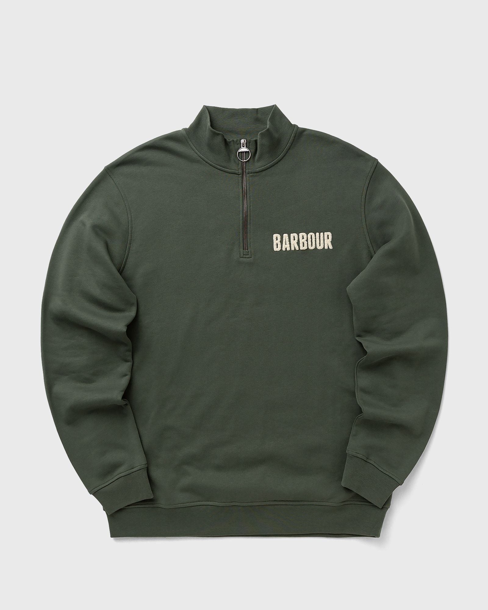 The Barbour Cotes Half-Zip Sweatshirt incorporates classic sportswear elements and exudes vintage flair in everyday wear. The distinctive lettering on the chest is reminiscent of college styles and makes this piece the perfect match for jeans and sneakers. - Stand-up collar with half zip - Ribbed cuffs and hem##- College-style logo