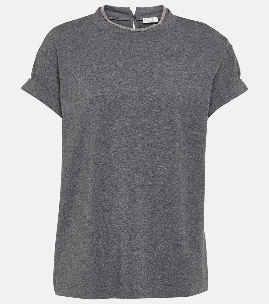 Brunello Cucinelli Embellished cotton-blend T-shirt