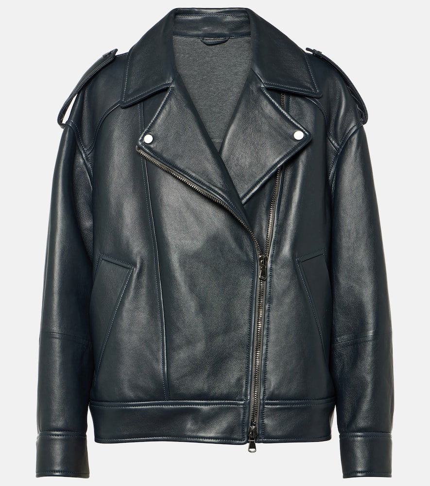 Cleanly finished and easy to style, the Brunello Cucinelli Oversized leather biker jacket works across smart-casual and off-duty outfits With practical pockets and comfortable lining, it’s built for easy, all-day wear. A versatile choice for layering through the seasons.