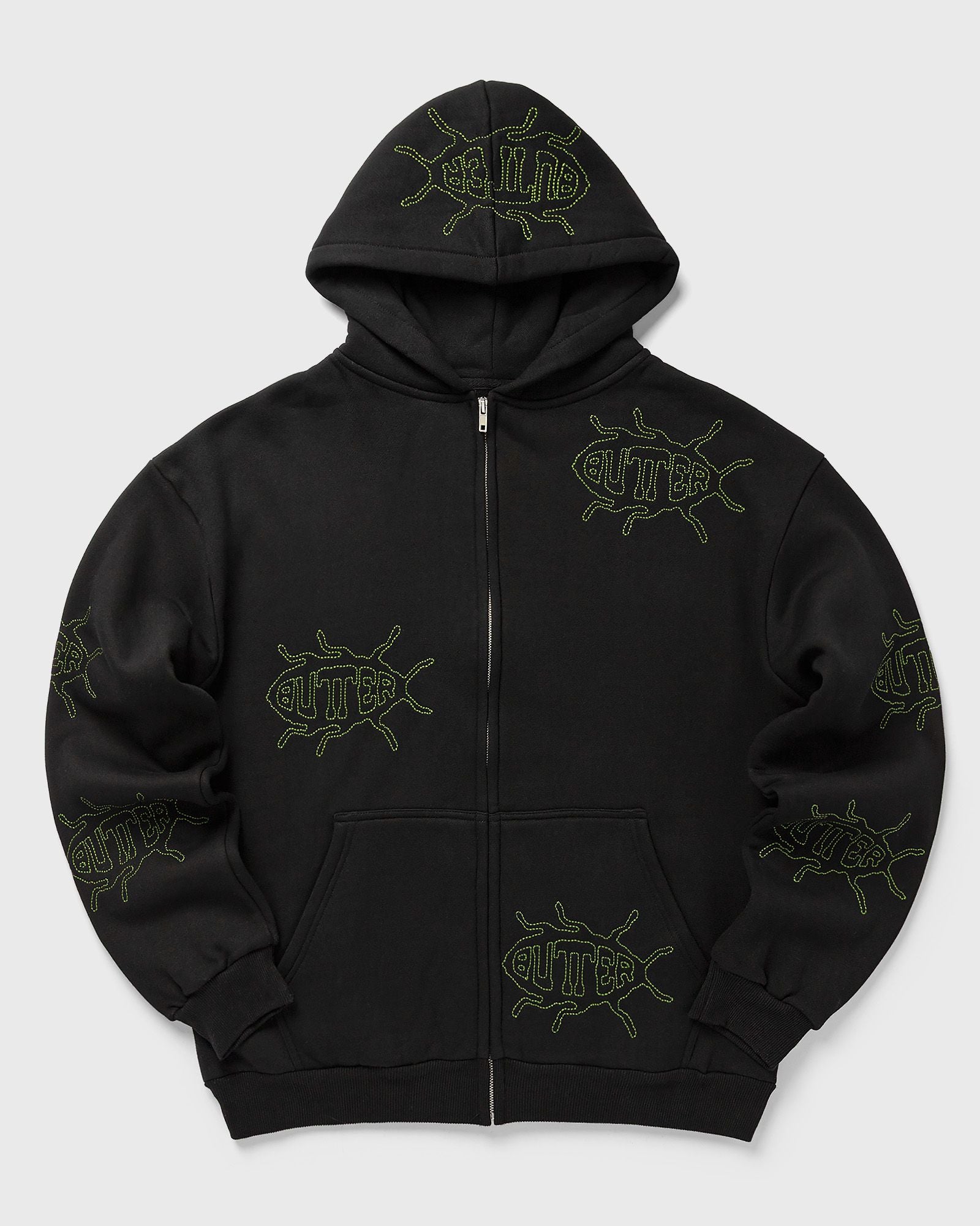 The Roach Zip-Thru Hood by Butter Goods is a high-quality zip hoodie that combines urban style with comfort. Made from a sturdy 12oz (380 gsm) cotton-polyester fleece, it offers both warmth and durability. The eye-catching all-over embroidery design gives the hoodie a unique look, while the two-way zipper provides flexibility. The loose, boxy fit with a relaxed hem and shorter length ensures a modern, relaxed fit. - Cotton/polyester blend fabric, 12 oz (380 g/m) fleece - All-over embroidery - Two-way zipper
