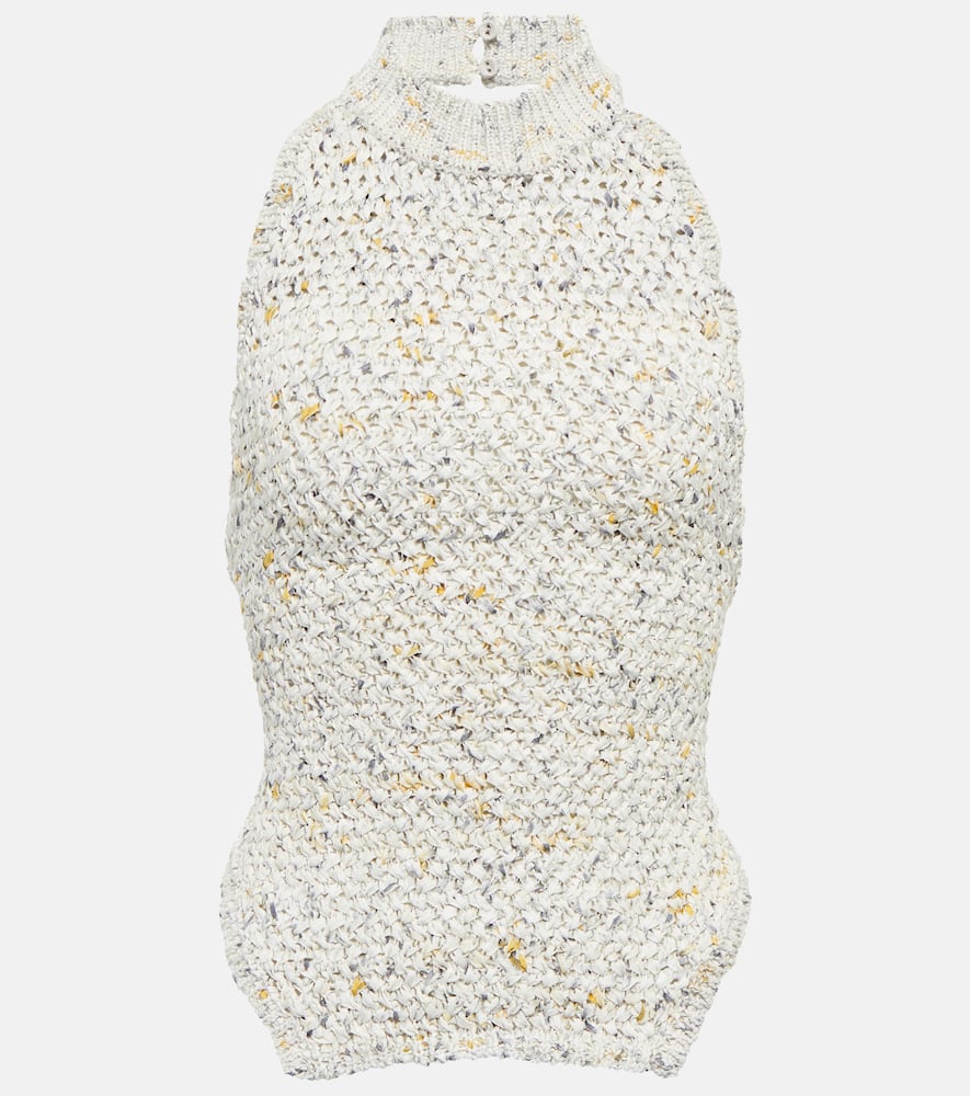 Designed in Italy, the Christopher Esber Sleeveless cotton-blend sweater is a neutral luxury Italian accessory offering a clean silhouette for elevated occasions.