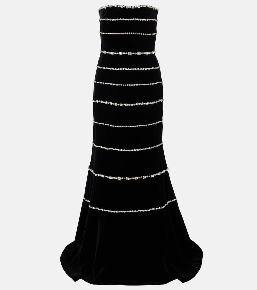 Costarellos Shaula crystal-embellished cotton velvet bustier gown