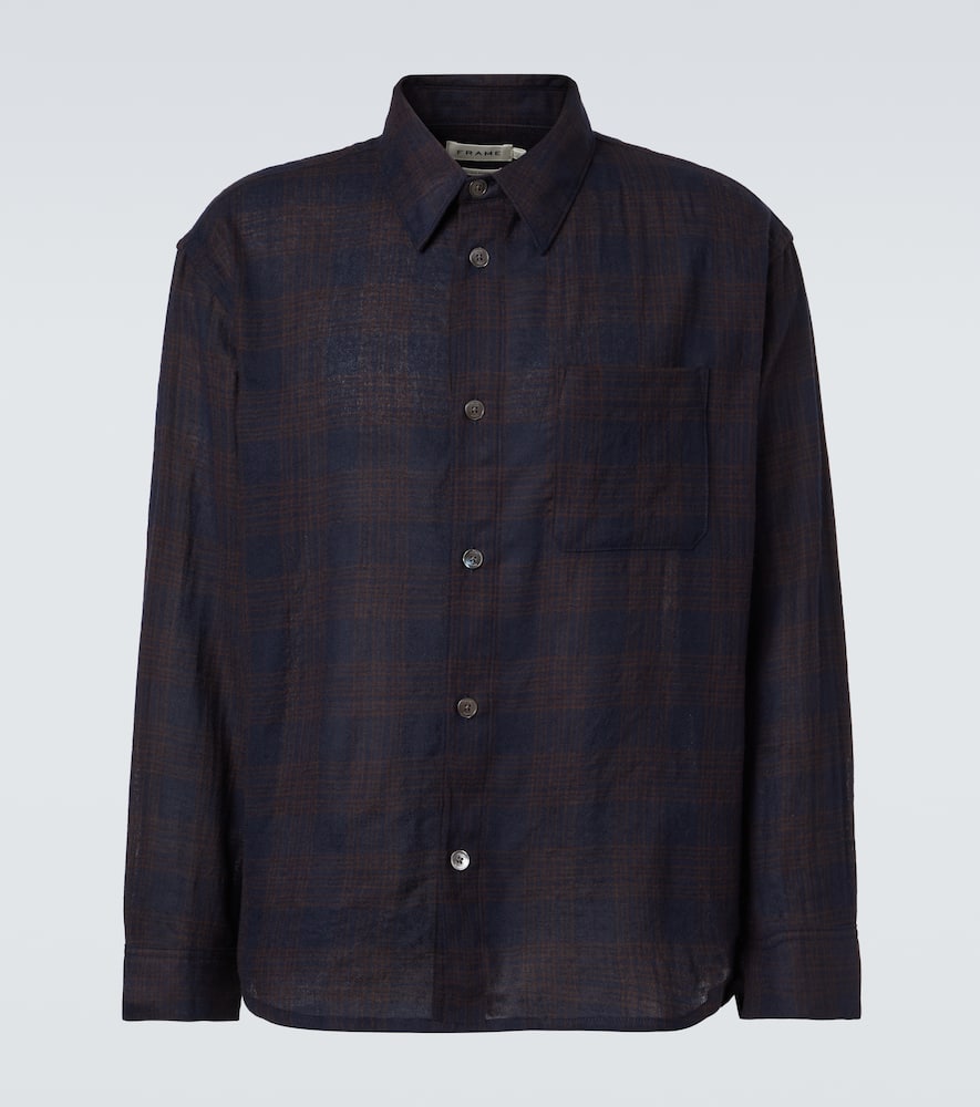 The Frame Plaid wool shirt is expertly crafted using material: 100% wool. care instructions: dry clean. made in mauritius. designer color name: navy multi. item color: blue. wool. collar: classic (straight point). cuff: buttoned. pockets: patch pockets. closure: buttoned front. — ensuring durability and an unmistakable touch of elegance. Its meticulous construction speaks to Frame’s dedication to quality and distinctive design.