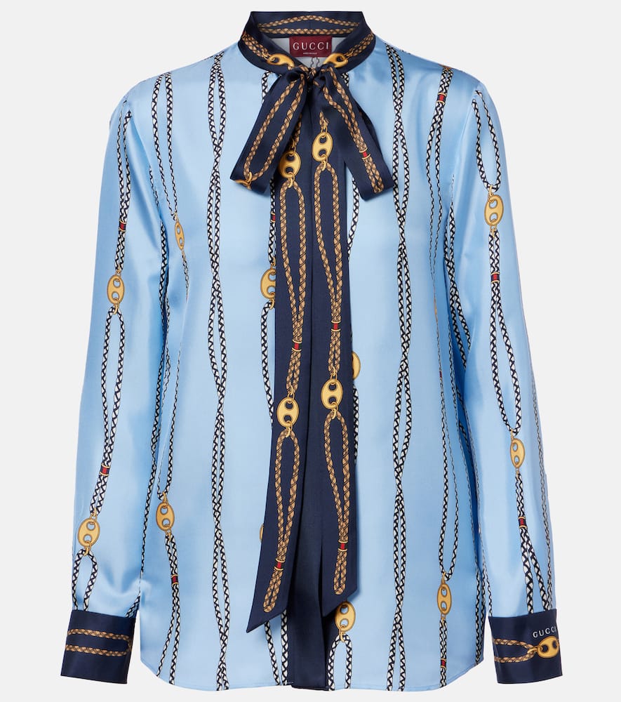 Gucci Printed tie-neck silk twill shirt