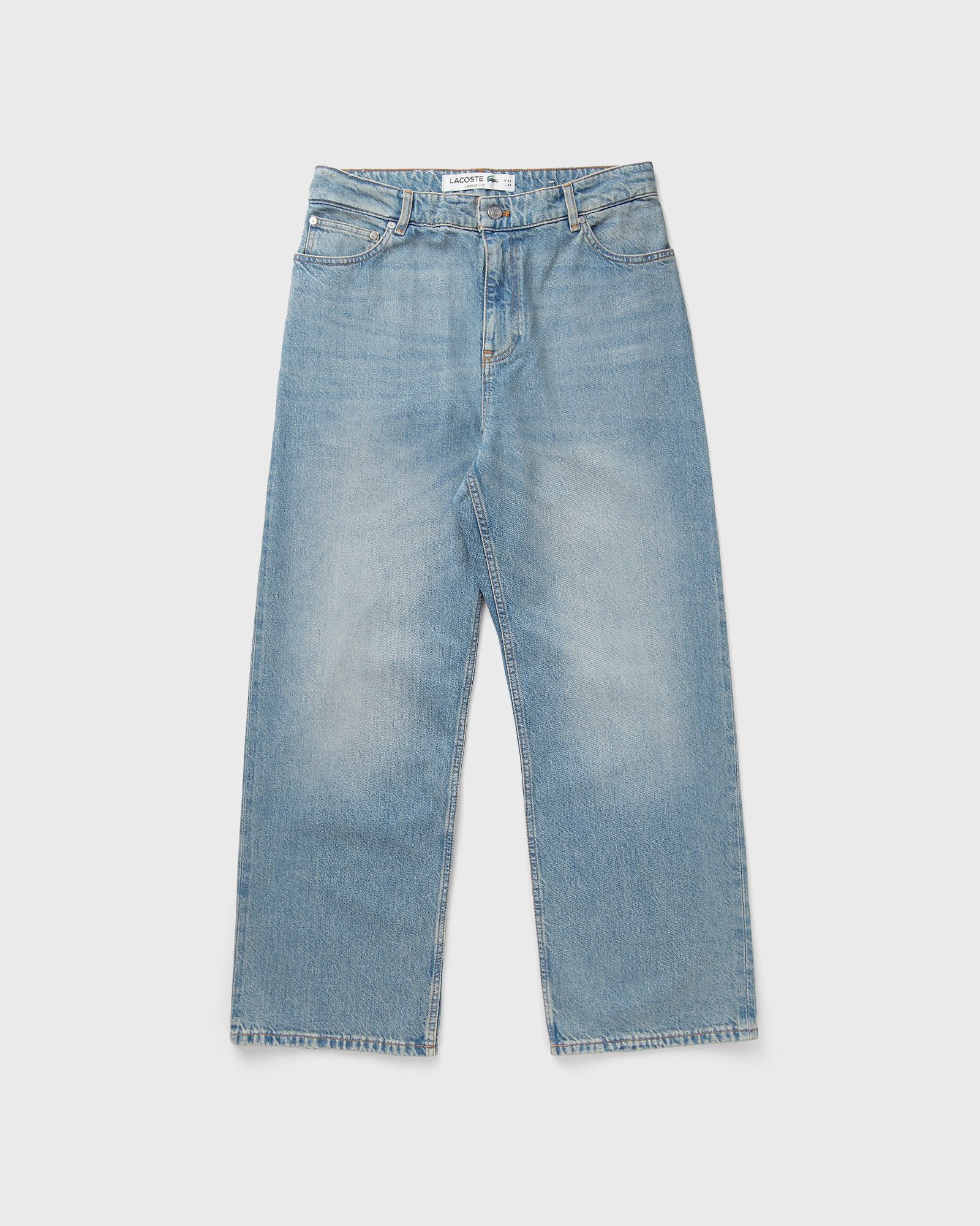 These jeans are a lesson in French elegance from Lacoste. Made from high-quality cotton denim in a classic five-pocket design, they feature a wide cut for a modern look. Sophisticated details such as the iconic brand detail on the back pocket complete the design. - Organic cotton denim - Loose fit, wide legs - Two front pockets and one coin pocket, two patch pockets at the back - Metal branding button and zippered fly - Branding badge on the back - Color-coordinated embroidered crocodile on the right back pocket