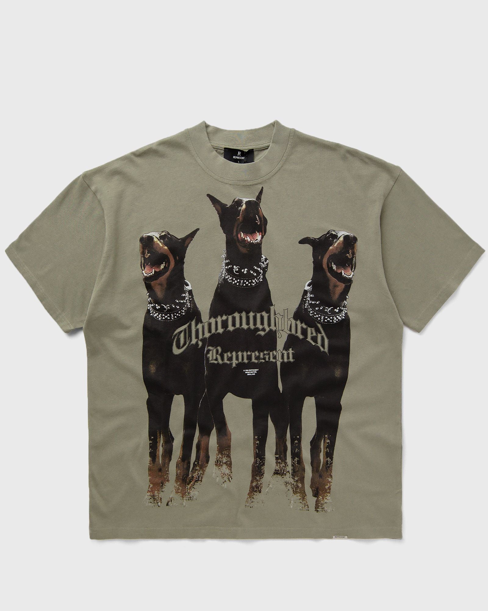 The Represent Thoroughbred T-Shirt is a short sleeve jersey t-shirt with a slightly oversized fit in a medium weight cotton. It features a ribbed crewneck collar and a graphic print to the rear and chest. - Crewneck collar - Short sleeves - Graphic print