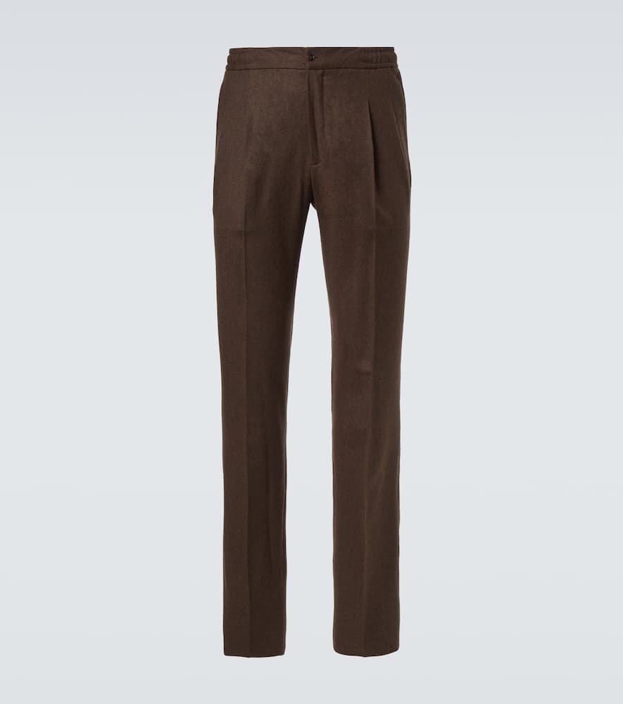 Crafted with a luxury finish, the Rubinacci Virgin wool flannel tapered pants from Rubinacci delivers an effortless blend of style and practicality. Expect a premium feel and a confident look that reads as a true designer shoes. Premium 100% virgin wool, zipped front closure, made in Italy, finished in Chocolate.