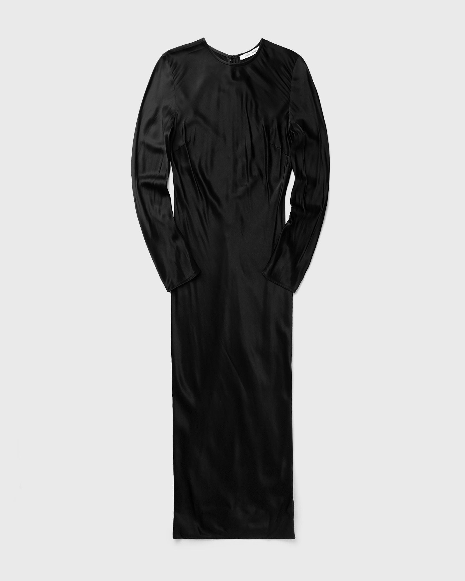 The ALINA LONG DRESS 14903 by Samse & Samse is a long-sleeved maxi dress made of satin with a slim fit. It features a classic round neckline and a hem slit at the back. - Invisible zipper at the back - Round neckline and hem slit - Main material made from a blend with LENZING ECOVERO viscose