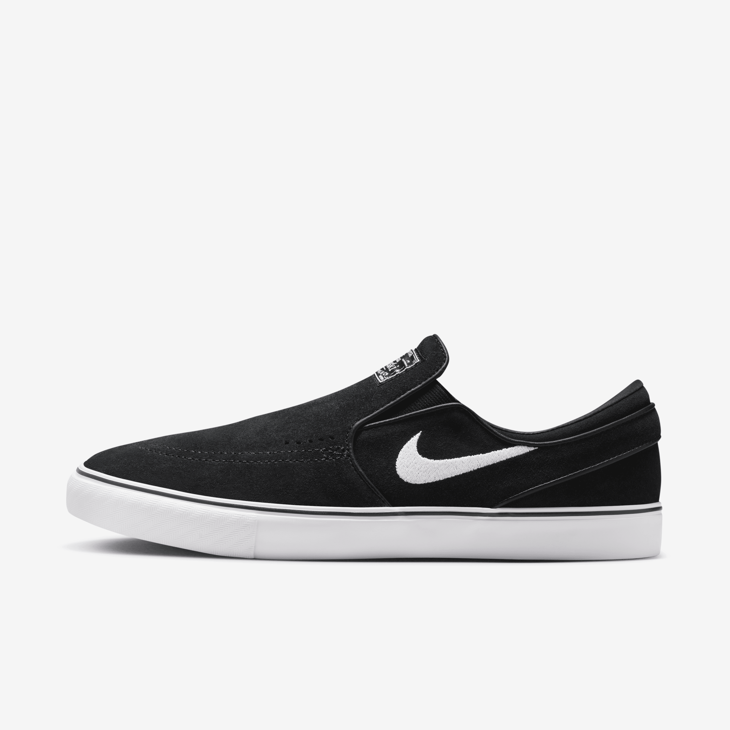 Ponte la próxima evolución de los Janoski+. Sin agujetas, con todo el soporte clásico. La suela específica para skateboarding brinda una excelente sensación y un movimiento óptimo en la tabla, a la vez que la horma rediseñada brinda un mejor ajuste y comodidad, lo que abre la puerta para un rendimiento del siguiente nivel. ["Beneficios: La parte superior de gamuza es suave y duradera. La confección vulcanizada fusiona la suela a la parte superior, creando así una sensación de flexibilidad y comodidad. La amortiguación Zoom Air, rápida y responsiva, ayuda a proporcionar una sensación de rapidez al despegar del suelo."] [] [] Style: FN5893; Color: Negro/Negro/Negro/Blanco; Size: 6.5; Age Group: Adult | Nike SB Janoski+ Slip