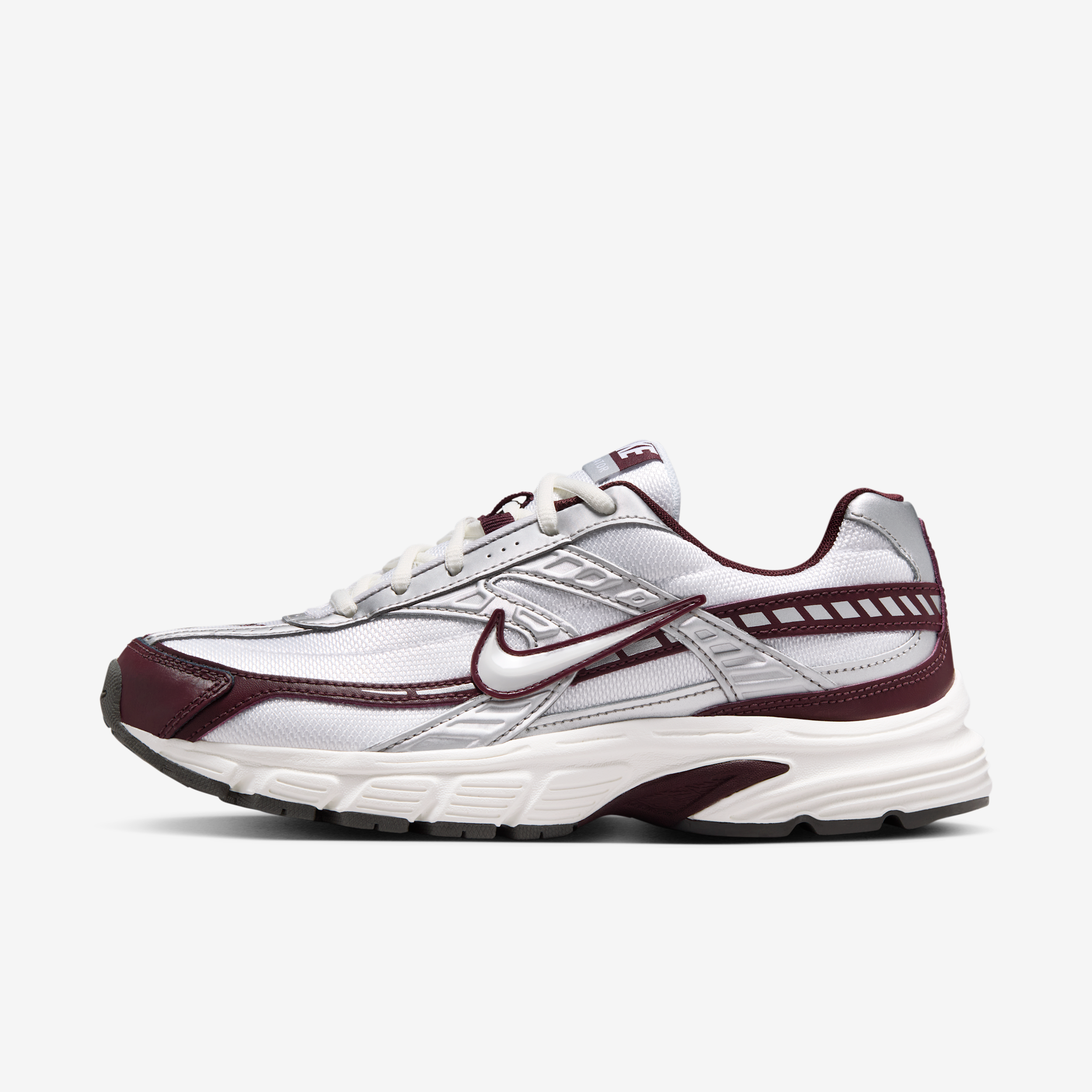 Recorre kilómetros con el cómodo soporte de los Nike Initiator. Combinan una parte superior transpirable con amortiguación suave para que puedas avanzar a grandes pasos. ["Beneficios: Los revestimientos con soporte ayudan a centrar el pie en los tenis. La entresuela de espuma brinda una pisada suave y amortiguada. Las ranuras flexibles en la suela te permiten moverte libremente."] [] [] Style: IB4688; Color: Blanco/Vela/Burdeos enérgico/Vela; Size: 7.5; Age Group: Adult | Nike Initiator