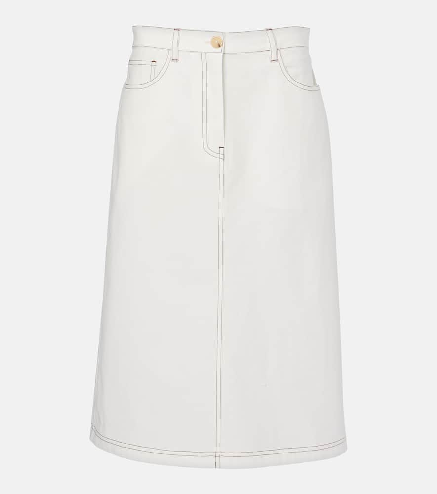 The Toteme High-rise denim midi skirt by Toteme offers refined style with a focus on premium craftsmanship and everyday wearability. Its white finish and sleek profile make it ideal for modern styling.