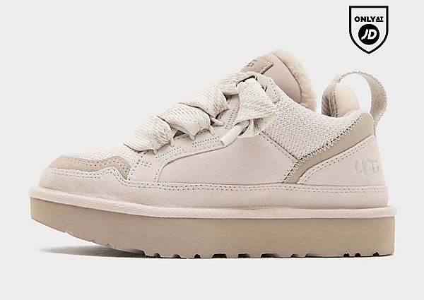 Stepping between sneakers and slippers? Get both in one with these women's Lowmel trainers from UGG. Rocky Oak up top mixes suede and recycled canvas panels, while oversized padding to the tongue and collar has UGGplush lining for max heat. The chunky EVA footbed sits on classic UGG tread. Finished with a heel pull, loose laces and UGG branding.